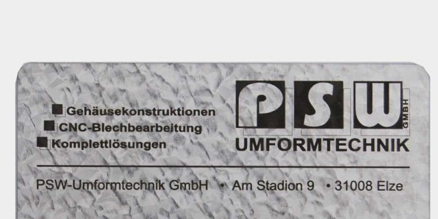 Mit dem Faserlaser sind wir in der Lage an eloxierten Aluminium, Edelstahl und Stahl (auch verzinkt) sämtliche Beschriftungen vorzunehmen. Die dauerhaft resistente Beschriftung erfolgt als Anlass-, Gravur- oder Abtragslasern.