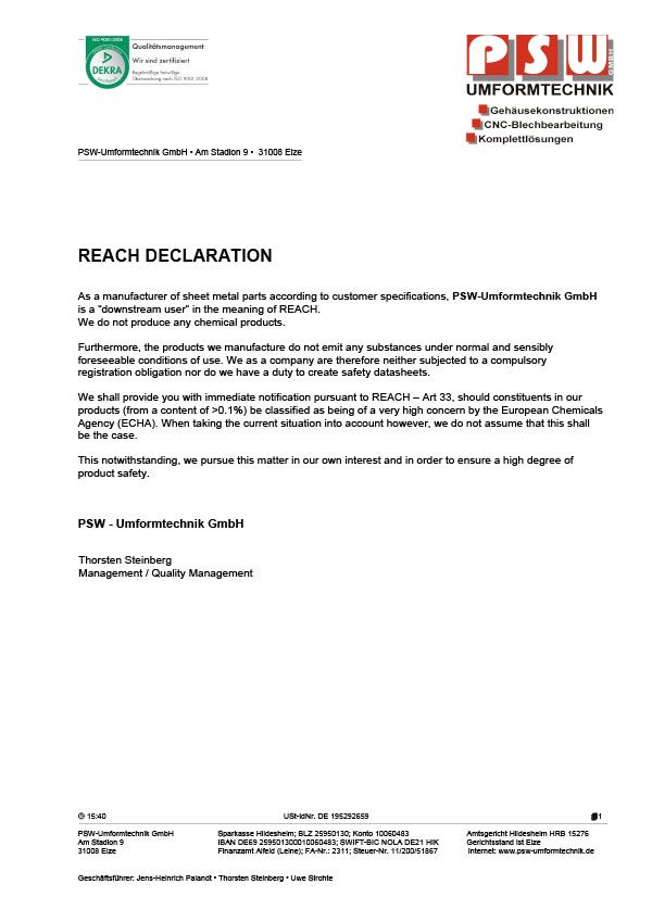 In the context of our corporate due diligence and to maintain customer satisfaction, we define our products and services strictly according to the DIN EN ISO 9001:2015 quality management standard. If desired, we can certify the quality of your products, from the prototype to mass production phases, in a test report.